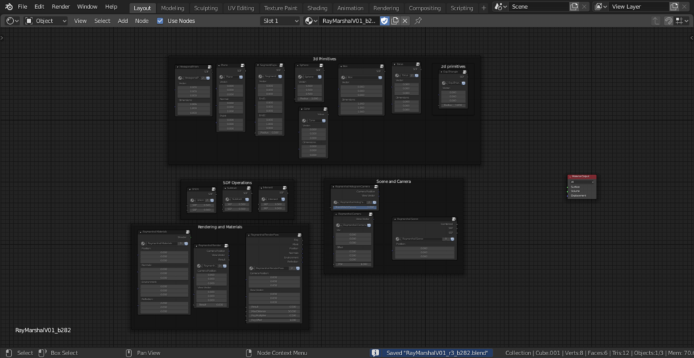 Raymarcher node pack and material example (.blend)